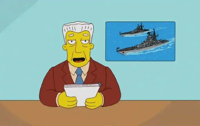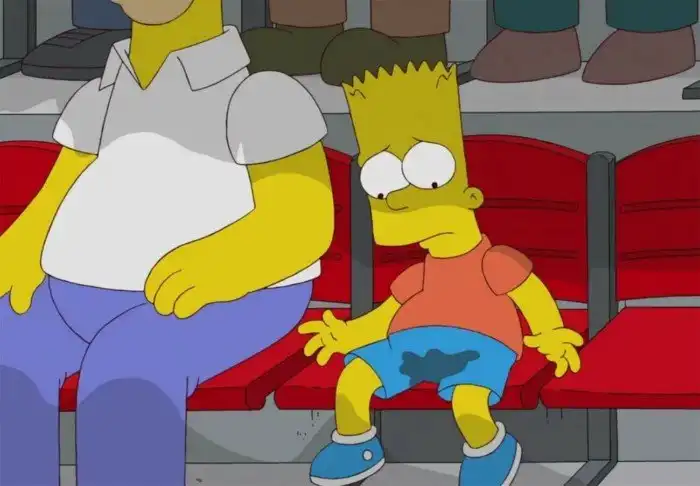 В довершение, вечером в новостях объявляют – после того, как крыша стадиона открылась (чтобы Барт просушил штаны на солнце), русские спутники засняли пятно на шортах из космоса. На основании этого снимка, который свидетельствует о трусости американцев, русский президент Дмитрий Медведев (серия вышла в 2011 году) объявил о вторжении в США, и русский флот – уже в Нью-Йоркской гавани.