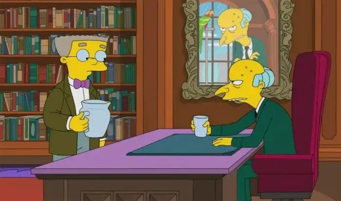 Монтгомери Бернс вообще фанат Сталина. В третьей серии 25 сезона можно даже увидеть портрет советского диктатора, нарисованный Бернсом с искренним старанием. Бернс с сожалением говорит: «Сталин – вот этот человек мог как следует надавить на тебя!»