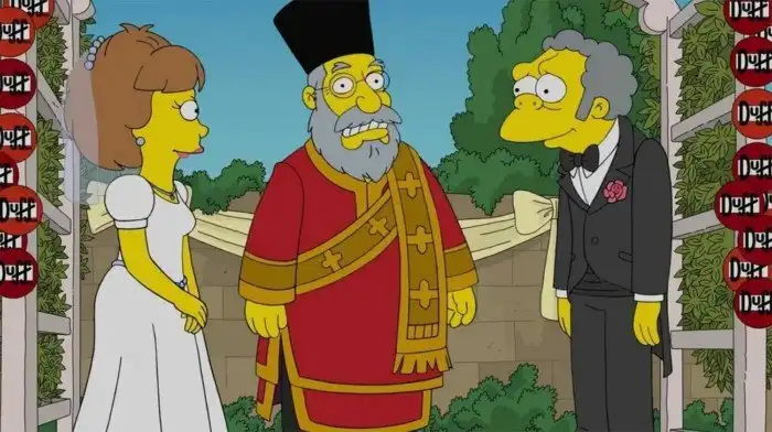 Казалось бы, серия From Russia Without Love должна быть полностью посвящена русским. На первый взгляд так и есть. Барт решает помочь Мо Сизлаку в его амурных делах и заказать ему жену по почте. Для этого он идет в даркнет (где русские торгуют оружием), и находит там нужный лот. Приехавшую девушку зовут Анастасия Алекова. Она быстро наводит в баре Мо порядок и уют. Вскоре заходит речь о свадьбе, которую проводит православный священник.