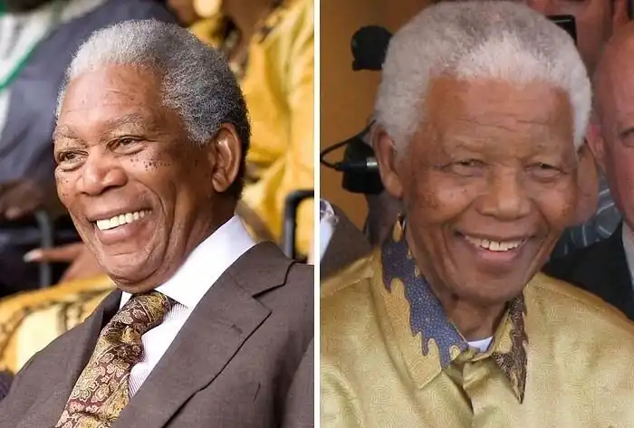 Морган Фримен в роли Нельсона Манделы в «Непокоренном» (2009)