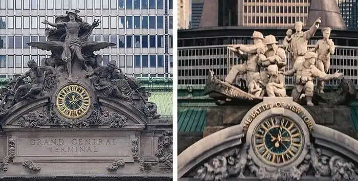 Известные часы на вокзале в Нью-Йорке в фильме “Мстители” изменились: сверху появился монумент борцам за Нью-Йорк. Предыдущий памятник снес левиафан Читаури и вместо него был поставлен новый.