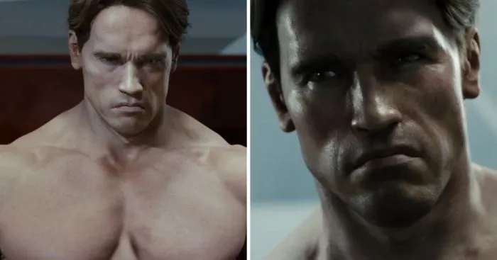 Арни в роли Т-800 выглядит как персонаж видеоигры. Но эта анимационная модель Шварценеггера появлялась именно в фильме. Всё-таки это были технологии нулевых.