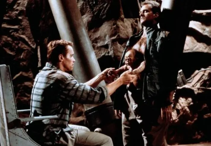 3. За время съемок Шварценеггер травмировался несколько раз. Так, например, во время сцены, когда его герой разбивает стекло, актер должен был замахнуться и остановить руку в последний момент. Но в итоге механизм с минивзрывчаткой не сработал, а Арни не рассчитал сил и действительно разбил стекло, из-за чего сильно порезался.
