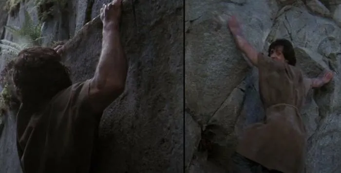 11. Скала, на которой висел Рэмбо меняется прямо между кадрами, ведь вначале было четко видно, что он держится за прямой уступ.