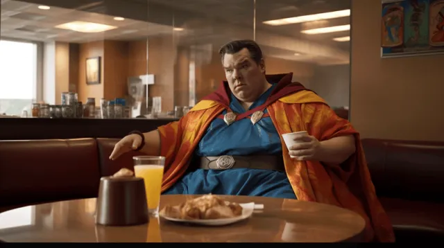 Комиксы очень часто обыгрывают идею мультивселенной, в которой существует бесконечное количество самых разных и странных вариантов нашего мира. Мы привыкли, что супергерои выглядят как безупречные красавцы с мощной мускулатурой. Страшно представить, как актеры впахивают в спортзале, чтобы соответствовать их идеальному телосложению. То ли дело вселенная, где все вокруг пухляши! В таком мире злодеи явно далеко не убегут. Следовательно, можно и на диване лишний часок полежать. Пользователь Reddit "ozdemirburak" с помощью нейросети прибавил... пару лишних килограмм. Получилось смешно и даже как-то умилительно.