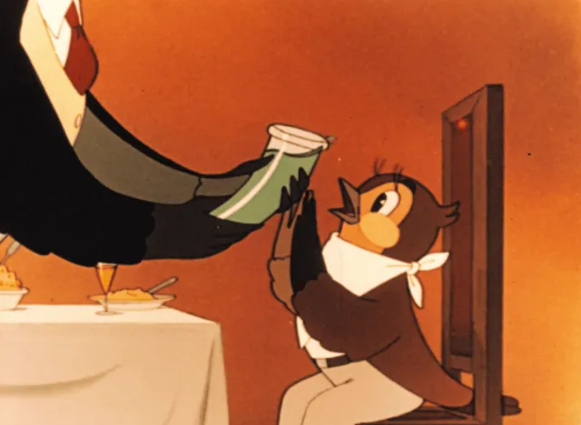 Сюжет: Воробей приходит на банкет к своему другу Дрозду, чтобы отметить его повышение по службе. На празднике гости приступают к распитию спиртного. Конечно, они предлагают присоединиться к ним и Воробья, который категорически отказывается от выпивки. Однако гости оказываются крайне настойчивы и убедительны.