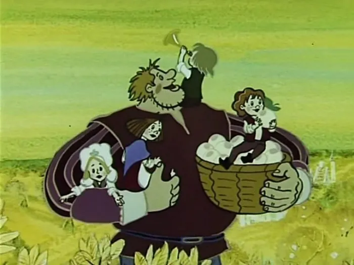 По сказке Оскара Уайлда. Великан внешне похож на самого Юрия Волынцева — он бы мог его сыграть не только за кадром, если бы снимался игровой фильм.