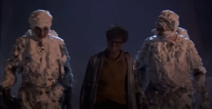 9. Когда герой Рика Мораниса убегает от призрака, в это время он еще и что-то умудряется говорить про собрание жильцов и домашних животных. Но при этом его рот просто открыт и не закрывается. То есть, во время съемок он вообще ничего не говорил, а речь была наложена позже.