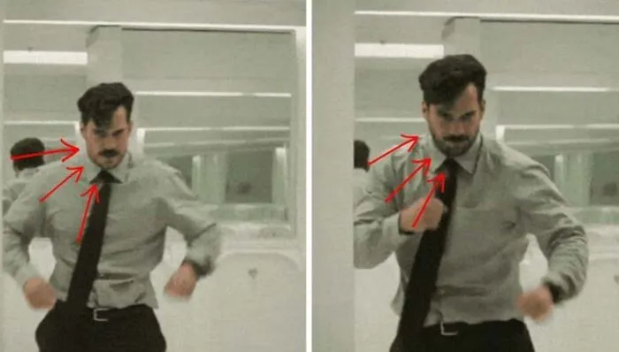 2. В фильме "Миссия невыполнима" у Генри Кавилла внезапно вырастает борода и появляется кармашек на рубашке в разных кадрах