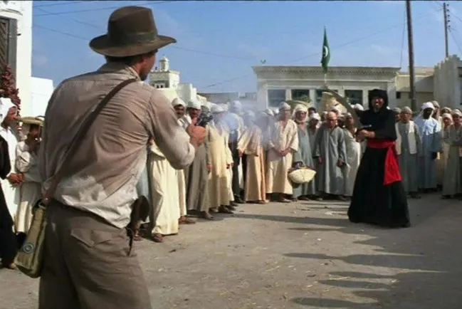 13. В фильме "Индиана Джонс: В поисках утраченного ковчега" оружие в руках главного героя несколько раз "меняется" с револьвера на пистолет