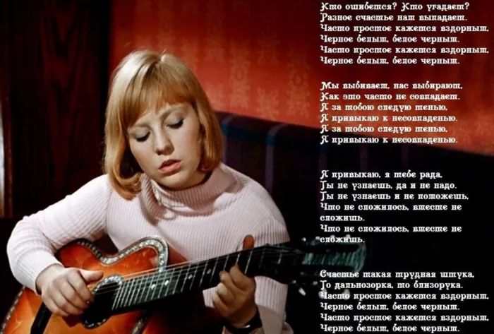 По сценарию в фильме пел Григорий Ганжа, но утвержденный Александр Збруев оказался непоющим актёром. В начале съёмок режиссёр услышал пение из гостиничного номера Светланы Крючковой, где вечерами собрались актёры. Оказалось, что это пела сама Крючкова. Режиссёр познакомил её с композитором Эдуардом Колмановским, и специально для актрисы он написал знаменитый романс «Чёрное и белое».