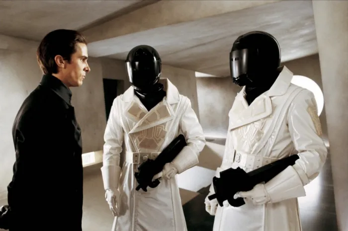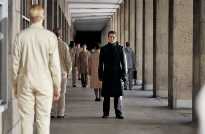 Но, если простить «Эквилибриуму» вторичность идей и предсказуемость сюжета, нельзя не заметить, насколько он хорош визуально. Образ государства, которое запрещает гражданам испытывать чувства, воплощён в стерильном минимализме, отличающем каждый кадр: чистые ровные линии, броские символы (флаг Либерии напоминает нацистские знамёна), скудная цветовая гамма. А клирики разгуливают в стильных одеяниях а-ля монашеские рясы — если бы их выполнял на заказ дизайнер «высокой моды».