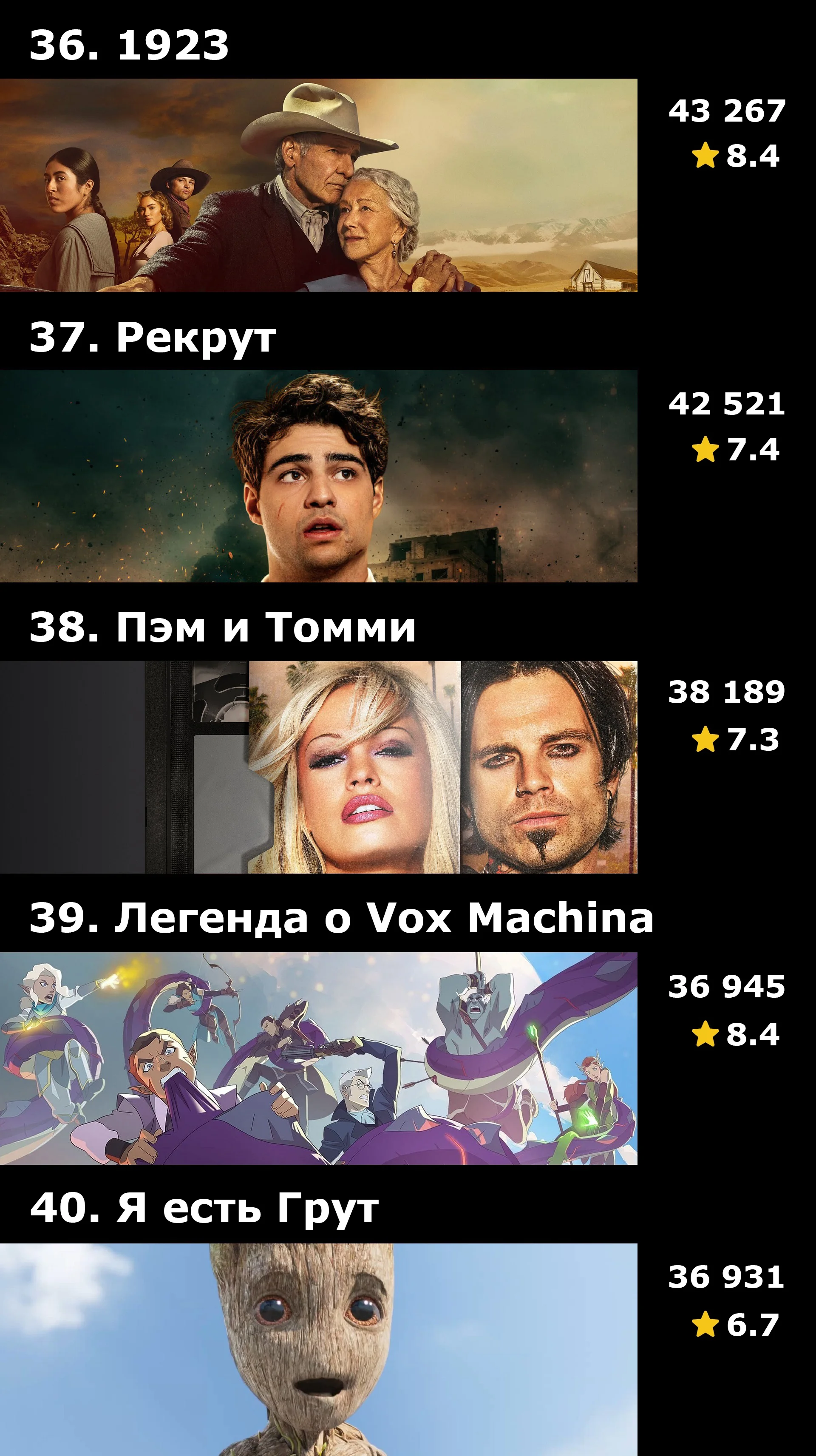 Топ-50 сериалов 2022 года по количеству оценок на IMDb