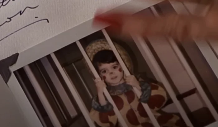 9. Когда "мама" Трумана показывает своему "сыну" фотоальбом, мы можем увидеть Трумана в детстве, который сидит в кроватке в костюме клоуна. Здесь создатели скрыли аж две метафоры. Костюм клоуна означает, что Труман просто развлекает публику, ну а кровать с решеткой конечно же значит, что он находится словно в тюрьме.