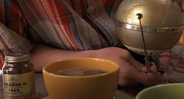 11. Создатели фильма очень ответственно подошли к своей работе. Например, на столе можно обнаружить баночку с витамином D, который в том числе нужно пить тем, кто не получает необходимого количества солнечного света. А как известно. Труман живет под куполом, поэтому ни о каком солнце не может быть и речи.