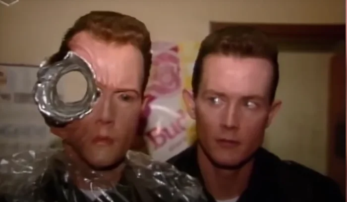 У Роберта Патрика работы тоже хватало: как только его не били и ни калечили в фильме. Однако и здесь не всегда задействовали компьютерную графику. Например, классическая сцена, когда Арни стреляет Т-1000 в голову. Здесь использовалась силиконовая кукла с сервоприводами, обеспечивающими реалистичное движение.