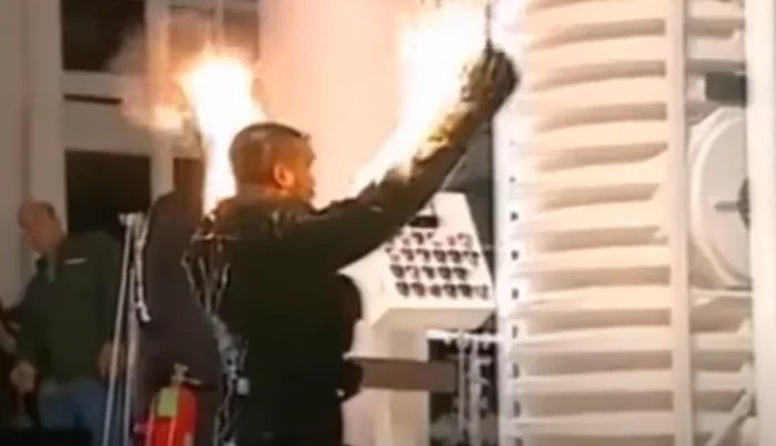 После того как сцена с поджогом Симмонса была отснята, члены съемочной группы тут же подбегали с огнетушителями, чтобы потушить горящего актера.