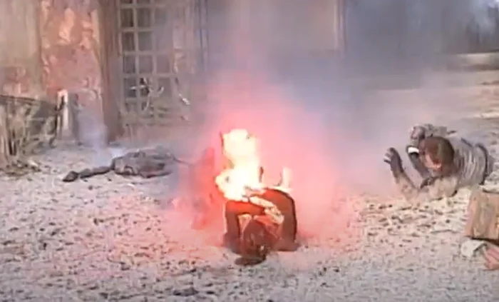 Дальше актеров подменяли манекенами, которые горели уже на полную катушку. По словам специалистов по спецэффектам, это были непростые съемки, и потребовался не один дубль, чтобы сделать все как надо. Но в итоге все справились.