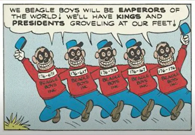 Кстати, в оригинале банда братьев Гавс называется "Beagle Boys" (Братья Бигли). Заметьте, что оба этих слова начинаются на букву Б. Также, в оригинале имя каждого брата Гавс начинается на букву Б - Bigtime (Шеф), Burger (Обжора), Bouncer (Вышибала), Baggy (Балбес), Bankjob (Банкир), Bugle (Плясун) и Babyface (Малявка).