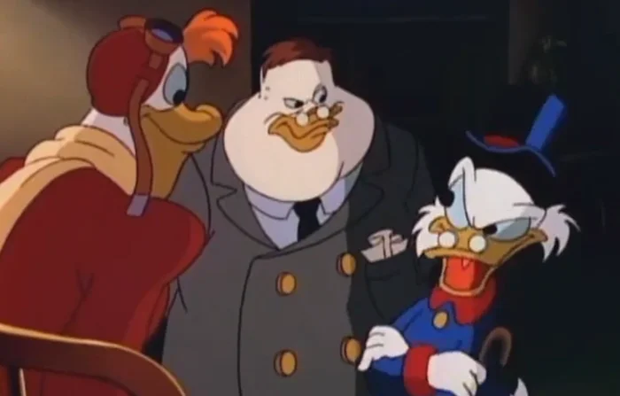 2. По изначальной задумке создатели хотели вписать в мультсериал камео (эпизодическое появление) таких персонажей как Микки Маус, Гуфи и Дональд Дак, но позже от этой идеи решено было отказаться. Из всего этого трио оставили лишь Дональда Дака, который поступает на службу в ВМС, поэтому просит своего дядю Скруджа позаботиться о своих племянниках.