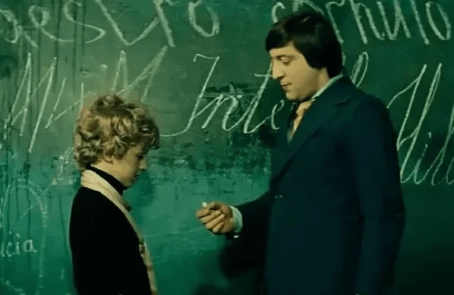 Хазанов придумал эпизод, в котором учитель прячется от учеников под стол, а те бросают туда что-то взрывающееся. Все было прекрасно сыграно, только немного не рассчитали мощность петарды и в момент взрыва на Хазанове загорелся пиджак. К счастью, актер не получил ожогов.