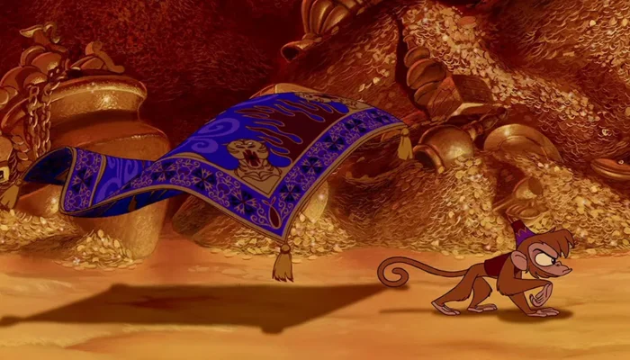 33. Для того, чтобы изобразить реалистичные движения ковра, аниматор Рэнди Картрайт складывал кусок ткани, а затем перерисовывал его. По словам Картрайта, это была нужная и очень сложная работа. Ну а затем анимация была перенесена на компьютер, после чего продолжилась работа над дизайном поверхности персонажа.