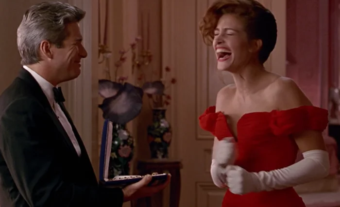 16. Сцены, когда Эдвард резко закрывает коробку с колье, чтобы напугать Вивиан, не было в сценарии. Все это оказалось чистой импровизацией Ричарда Гира, поэтому и эмоции Джулии Робертс здесь также неподдельные. Эта импровизация так понравилась режиссеру, что ее решено было вставить в фильм.