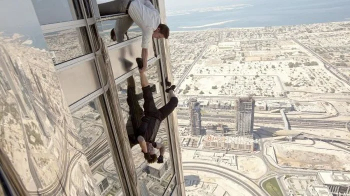 14. Том Круз на Бурдж-Халифе отрабатывает трюки