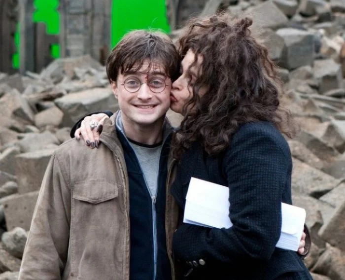 19. Дэниел Рэдклифф и Хелена Бонэм Картер в свободную минуту на съёмках "Гарри Поттера"