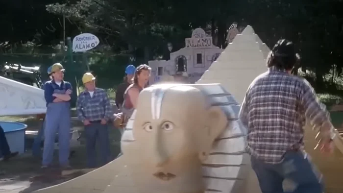 4. Режиссер Гарри Маршал решил вставить небольшую отсылку на обожаемый им фильм "Заводной апельсин". Когда Джоана случайно срубает бензопилой голову чучелу, то можно заметить, что вокруг одного глаза этого чучела имеется черная звезда. Примерно в том же стиле красил глаз Александр ДеЛардж в фильме "Заводной апельсин".