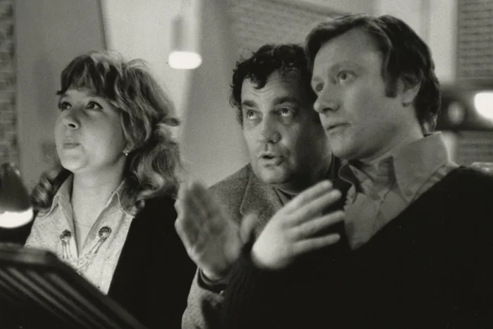Наталья Гурзо, Эльдар Рязанов и Андрей Миронов во время озвучивания