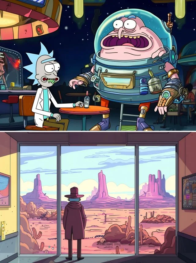 Мультфильмы "Тайна третьей планеты" и "Рик и Морти", казалось бы, совершенно несочетаемые истории. Однако, для нейросетей не бывает ничего невозможного. В итоге получился действительно крутой микс. Как вам такое нейросетевое творение?