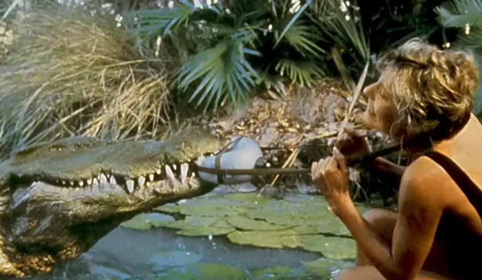 5. Изначально планировалось, что в съемках будет участвовать настоящий крокодил, но актриса Линда Козловски наотрез отказалась сниматься рядом с настоящей зубастой рептилией. Тогда было решено приобрести механический экземпляр. К слову, искусственный крокодил обошелся студии в 45 тысяч долларов.