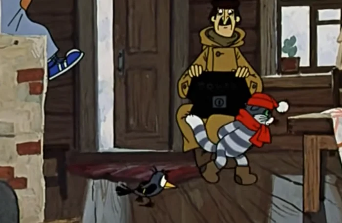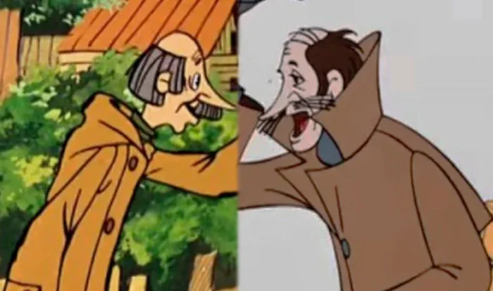 8. Многие заметили (особенно после видео блогера Сыендука), что почтальон Печкин очень похож на бандита Курочкина из мультфильма "Приключения Васи Куролесова". Такой же плащ, такой же нос, тот же голос (озвучка Бориса Новикова) и фигура. Даже усы поддельные, о которых говорил Печкин, имеются.