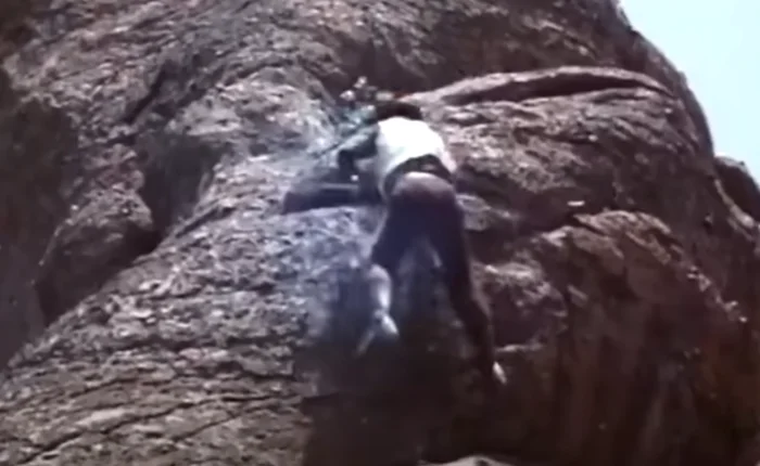 Даже в сложнейшей сцене падения со скалы мы видим не каскадера, а самого Стоянова. Нет, конечно в падении мы видим манекен, но вот срывался со скалы именно Стоянов, который был обвязан фиксирующей веревкой.