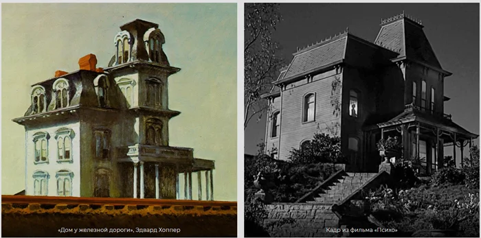 41. "Дом у железной дороги" Эдвард Хоппер — "Психо" Альфред Хичкок