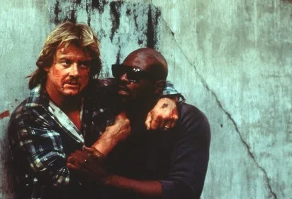 Отчаянное сопротивление Фрэнка просто примерить очки, чтобы увидеть замаскированных инопланетян и скрытые послания, это психологическое нежелание принимать правду, оставаясь в комфортной зоне. Но Фрэнк уже говорил про заговор, он в нем убежден и так, очки лишь стали бы 100% доказательством. Тут скорее Джон Нада прозрел, увидев какова реальность на самом деле и пытается помочь другу, но выглядит это странным, мало кто поверит в то, что надев очки ты увидишь реальный мир с инопланетянами и контролирующими лозунгами.