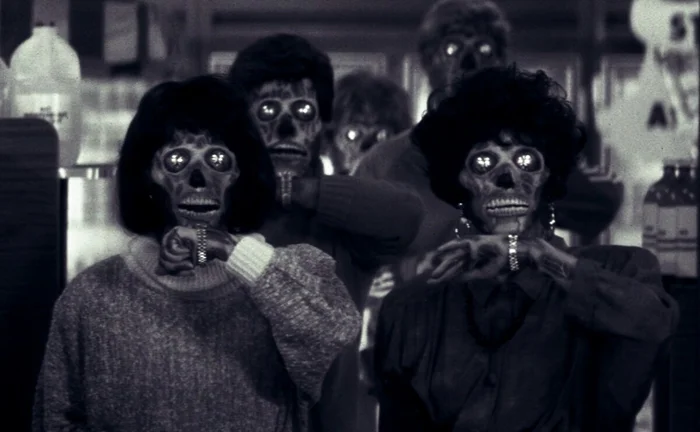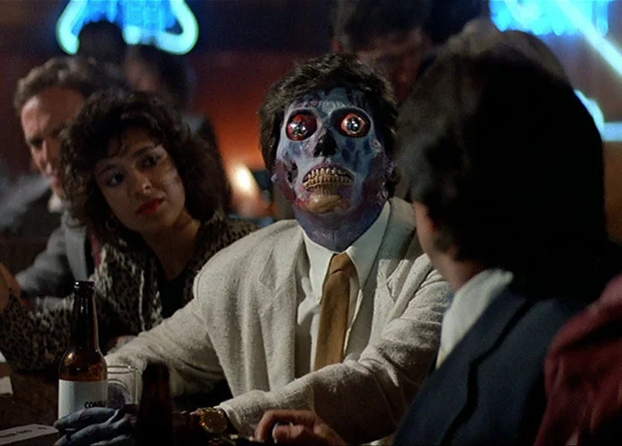 Режиссер Карпентер с первых минут фильма демонстрирует Америку времен президента Рейгана. Главный герой — Джон Нада, фамилия на испанском значит «ничто», то есть это обычный человек, каким мог оказаться любой. Он потерял работу из-за внезапно закрывшихся фабрик и банков — что уже говорит о критике экономической политики Рейгана — «Рейганомики». В те годы для бизнеса снизили налоги, и государство провозгласило политику невмешательства в дела предпринимателей.