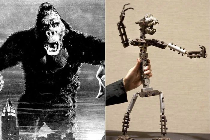 Первый фильм о гигантской обезьяне "Кинг-Конг" был снят в 1933 году. Тоглда о цифровых технологиях можно было только мечтать, так что разгром, учиненный Кинг-Конгом в Нью-Йорке снимался на миниатюрных моделях. Модель самого гиганта представляла собой полуметровый металлический скелет, обтянутый мехом. Этот скелет был продан в Лос-Анджелесе с аукциона за $200 305 в 2009 году.