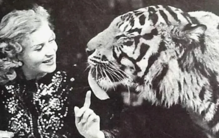 И еще один момент. Константин Константиновский всегда помогал своей жене во время выступлений. И несмотря на то, что Назарова прекрасно работала с тиграми, неподалеку всегда находился ее муж с пистолетом в руке (на всякий случай).