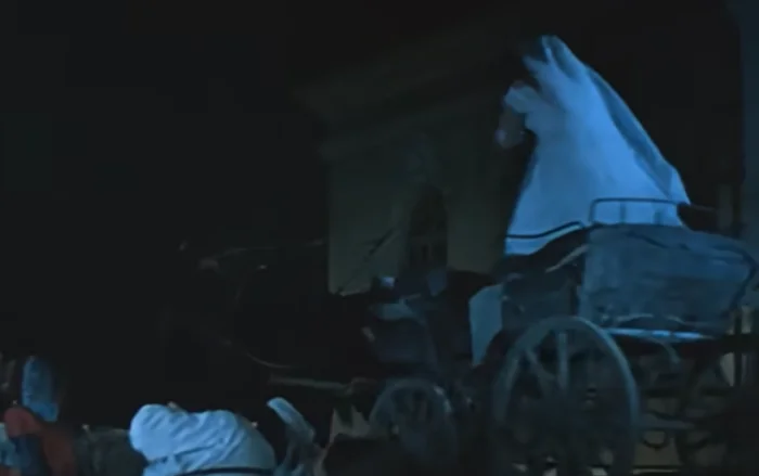 13. В сцене, когда невеста выбегает и уезжает в повозке, стоя управляя лошадьми, саму невесту играл каскадер Александр Массарский.