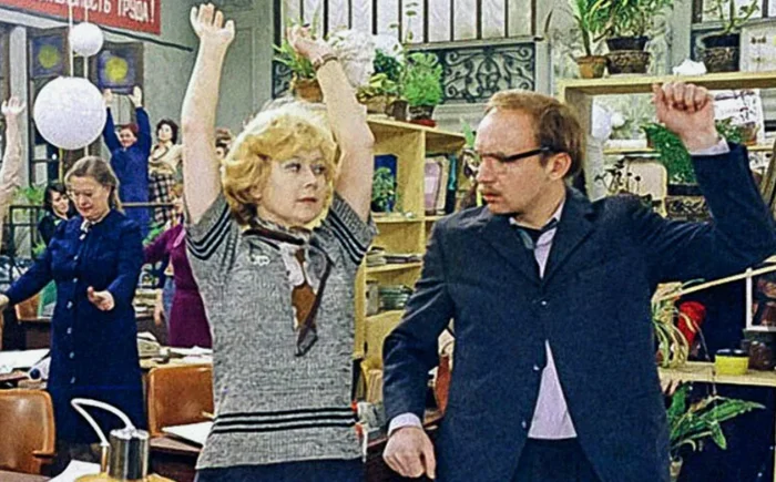 7. Образ модной и современной Секретарши Веры воплотила на экране Лия Ахеджакова. Причем, что самое интересное, по пьесе "Сослуживцы" Верочка была длинноногой блондинкой, тогда как сам Рязанов почему-то решил изменить образ взяв маленькую Ахеджакову.