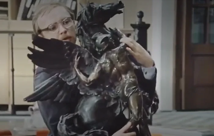 Кстати, Андрей Мягков вовсе не играл, когда изображал натужность во время того, как держал скульптуру в руках. Дело в том, что данная скульптура далеко нелегкая, ведь ее вес составляет аж 20 килограмм.