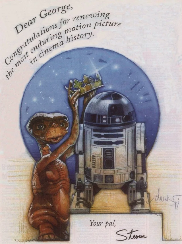 1983 год: Джордж Лукас поздравил Спилберга в том же стиле, когда новым кассовым рекордсменом стал «Инопланетянин»