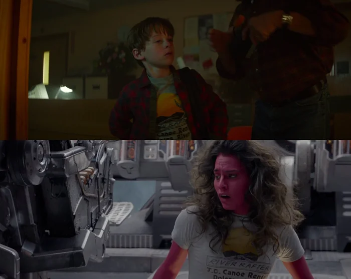 Когда мы впервые видим Берит (Мелия Крейлинг) на борту "Милано", она облачена в футболку, которую носил молодой Питер в момент похищения с планеты.
