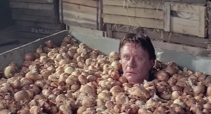 8. Довольно сложно давалась Андрею Миронову сцена с луком в начале фильма. Температура на овощебазе не превышала +5 градусов. Актер был вынужден находиться закопанным в луке на протяжении 45 минут. После этого актер не выдержал, вылез из лука и просто ушел с площадки, громко выругавшись в адрес режиссера.