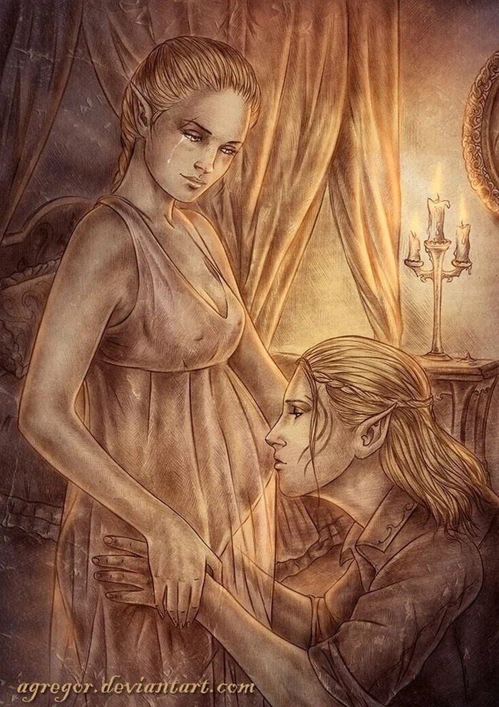 Эльфы могут зачать ребенка, только если сильно и искренне этого хотят. То есть недостаточно просто физической близости — необходимо именно намерение и усилие духа обоих партнеров, чтобы эльфийка забеременела. Поэтому случайные беременности у эльфов просто невозможны.