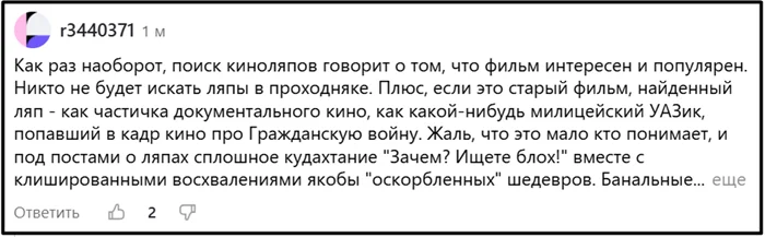 Во-вторых, если дело касается действительно шедеврального, а тем более советского кино, то это и вовсе вызывает бурю негодования, так как нельзя очернять советские фильмы (хотя их никто не очерняет).