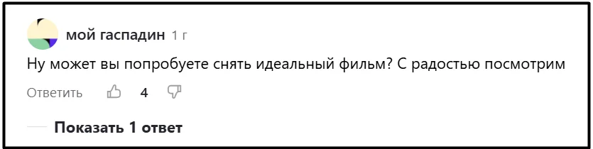 Во-первых, многие почему-то сразу начинают опускаться до оскорблений, называя авторов занудами (в лучшем случае), душнилами, ограниченными или людей, которым нечем заняться. Дескать, нормальный человек будет смотреть кино, а не вглядываться в каждый кадр, чтобы выискивать какое-то несоответствие.