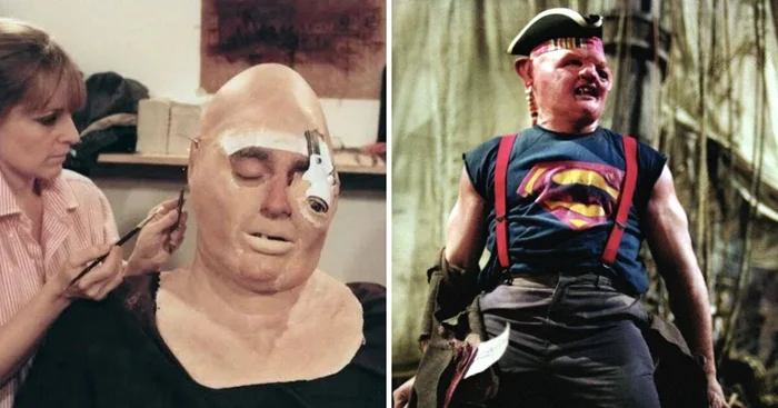 8. Джон Матушак гримируется под Слота за кадром фильма «Балбесы» (1985)